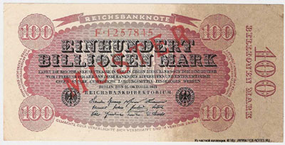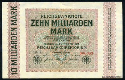 REFERENCE: Issues of the Reichsbanknote 01.10.1923-26.10.1923 Reichsbanknots of the 1923 issues were in circulation until 1924. Period of hyperinflation in Germany.