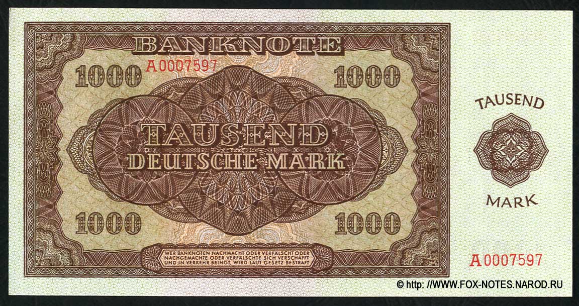333333-GDR Deutschen Noten Bank 1000 mark banknote 1948-444444