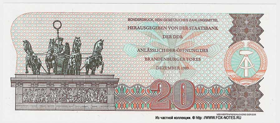 REFERENCE: Issues of banknotes of the State Bank of the GDR (Staats Bank der DDR) 1971-1989.