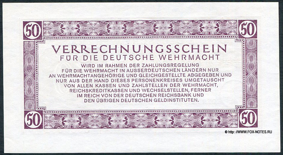 REFERENCE: Payment certificates for Wehrmacht servicemen. Graduation 1944.