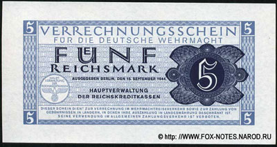333333-Verrechnungsscheine für die Deutsche Wehrmacht 5 reichsmark 1944-444444