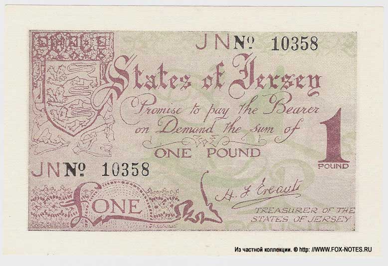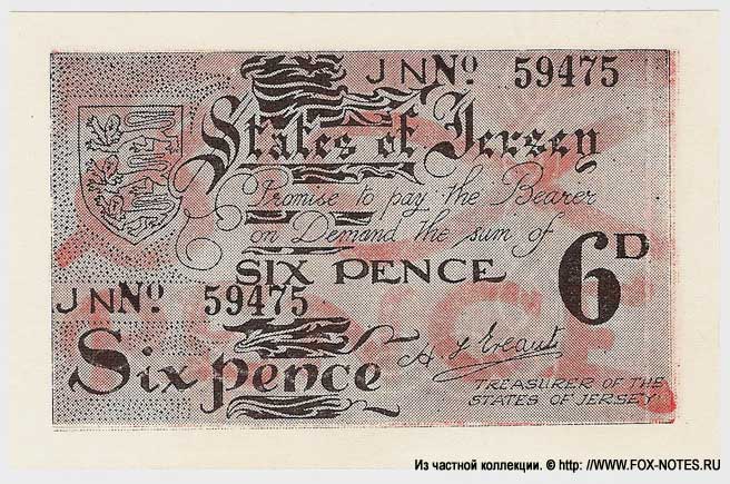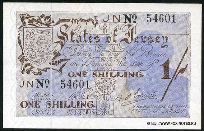 {SH2.0: §II. F-A/a} {§III} 1.1. Issue : Issues of banknotes about. Jersey during the German occupation - from July 1, 1940 to May 9, 1945. 1.2. Reference: Between July 1, 1940 and May 9, 1945, the island of Jersey was occupied by Nazi Germany. More than 30 thousand islanders were evacuated to the UK. The rest of the Germans from time to time drove to fortification work. The island became part of the Atlantic Wall. In the period from October 1941 to January 1944, the construction of a system of underground tunnels was carried out by the hands of prisoners of war (Spaniards, French, Russians, Ukrainians, Moldavians). In the last year of the war, these tunnels were converted into an underground hospital, which, however, was never used. Many builders died, unable to withstand inhuman conditions. The few who fled the camp were rescued by local residents. Some inhabitants of the island - at the cost of their own lives. Since Operation Overlord did not provide for the liberation of the Channel Islands, Jersey was occupied until the surrender of Germany on May 9, 1945. Material from Wikipedia - free encyclopedia (CC BY-SA). 3.1. Grabowski H. Die deutschen Banknoten ab 1871. Battenberg Gietl Verlag GmbH. Auflage: 21., Auflage 2018 (7. Dezember 2017) {Catalog code - "Ro"} 3.2. Standard Catalog of World Paper Money, General Issues, 1368-1960. Krause Publications; Sixteenth Edition (16) (29. Dezember 2016) {Catalog code - "P"} 3.3. J.Mackay, MA, J.W. Mussell. The Banknote Yearbook. 5th Ed. 2007 Token Publishing Ltd. 3.4. Hans-Ludwig Grabowski. Ausländische Geldscheine unter deutscher Besatzung im Ersten und Zweiten Weltkrieg. Gietl Verlag & Publikationsservice GmbH, Regenstauf, 2006. ISBN 3-86646-505-X 978-3-86646-505-3