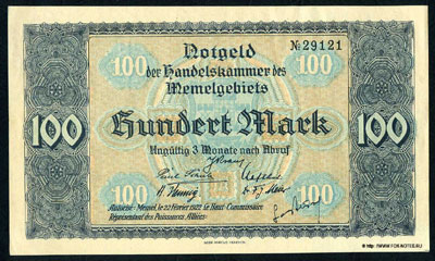 Notgeld der Handelskammer des Memelgebiets  100 Mark 1922