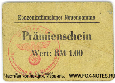 333333-Konzentrationslager Neuengamme Prämienschein. RM 1.00-444444