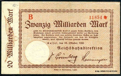 REFERENCE: Banknotes of the German Imperial Railways. Issue - Reichsbahndirektion Cassel.
