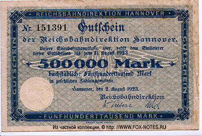 333333-Reichsbahndirektion Hannover 500000 Mark 1923-444444