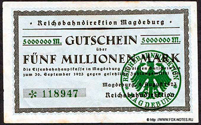 333333-Reichsbahndirektion Magdeburg 5 Millionene Mark 1923-444444