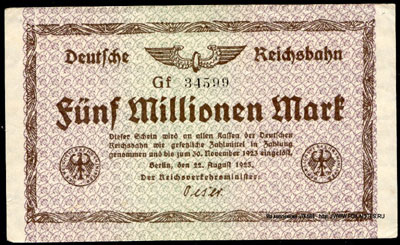 333333-Deutsche Reichsbahn Reichsverkehrsministerium Berlin 5 Millionen Mark-444444