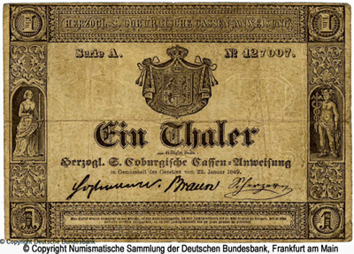 333333-Herzogtümer Sachsen-Coburg und Gotha Obersteuerkommission 1 Thaler 1849-444444