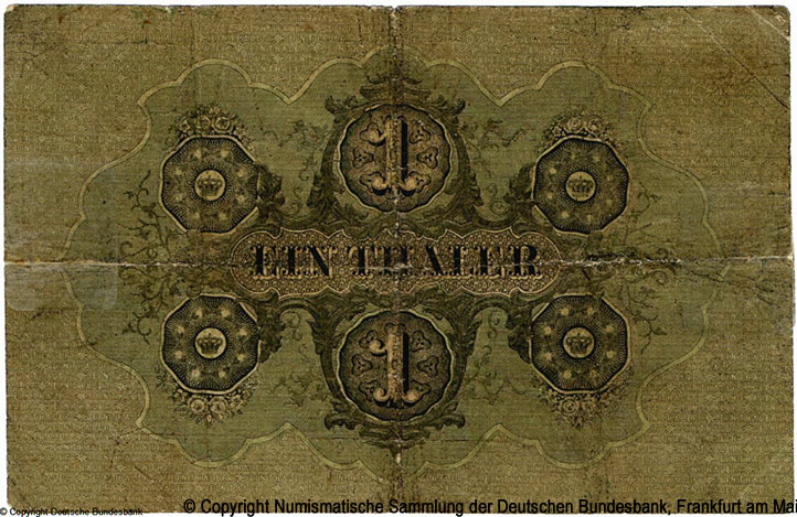 1. * 1 - Photo of a banknote from the Deutsche Bundesbank collection, Frankfurt am Main. © Copyright Numismatische Sammlung der Deutschen Bundesbank, Frankfurt am Main.