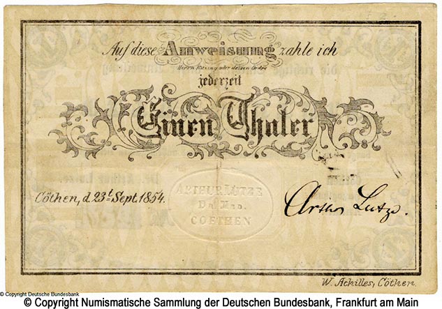 1. * 1 - Photo of a banknote from the Deutsche Bundesbank collection, Frankfurt am Main. © Copyright Numismatische Sammlung der Deutschen Bundesbank, Frankfurt am Main.
