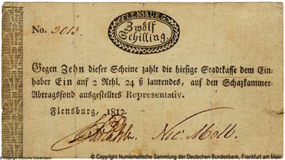 333333-Stadtkasse Flensburg Scheine. 12 Schilling. 1812.-444444