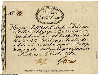 Stadtkasse Kiel issues. Issue of 1812 banknotes, in shillings.