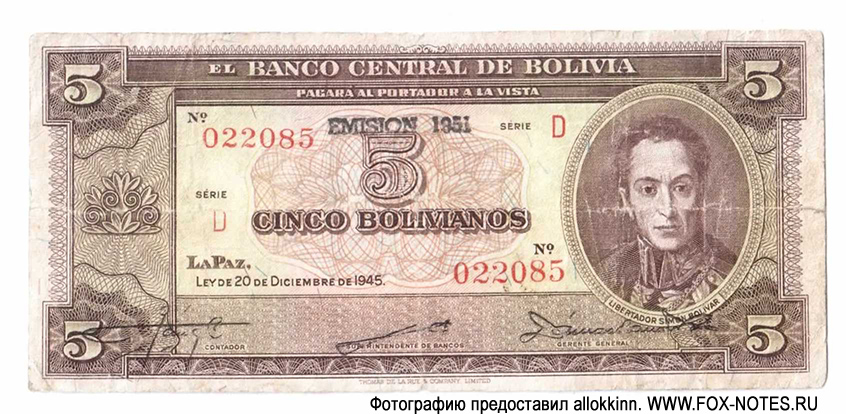 Bolivia 100 boliviano 1945