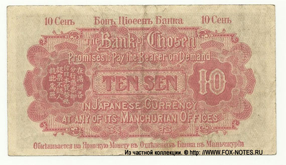 - Japan. Josen Bank (Ciosen Bank). Issue bon 1919.