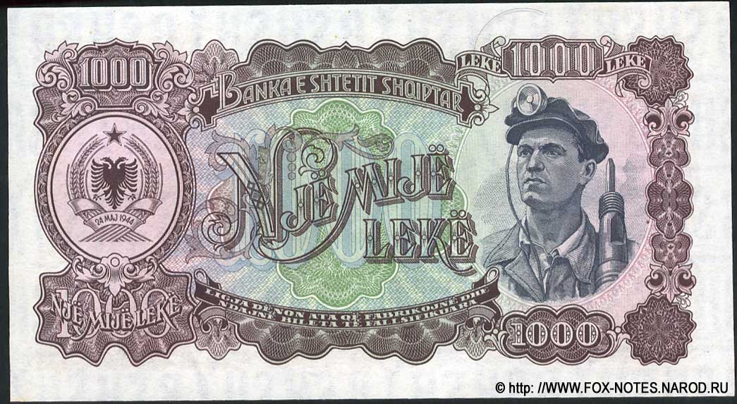 1,000 leke - 1949. 173 x 94 mm. [5.1]