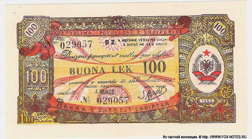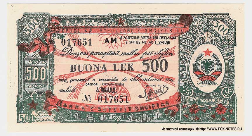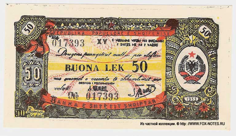 1.1. Issue: People's Republic of Albania. Banka e Shtetit Shqiptar. 1953 bon (currency certificate) issue.