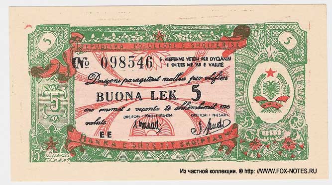 People's Republic of Albania. Banka e Shtetit Shqiptar. 1953 bon release.