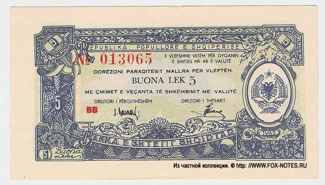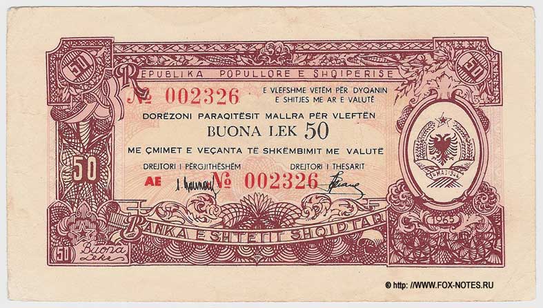 1.1. Issue: People's Republic of Albania. Banka e Shtetit Shqiptar. 1956 bon (currency certificate) issue.