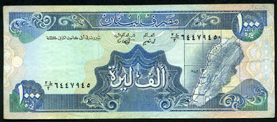 {SH2.0: §II. F-A/a}  {§III}  1.1. Issue : Lebanese Republic. Banque du Liban issues. 1988 banknote issue.     1.2. Manufacturer of banknotes (printing house):   Thomas De La Rue & Company, Limited (TDLR), UK  1.3.  Signatures: 3.1.Standard Catalog of World Paper Money, Modern Issues, 1961-Present  (2020) Krause Publications; Twenty fifth (25) Edition (2. April 2019) {Cipher in the site catalog - "P"}