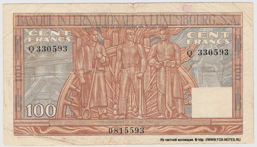 Grand Duchy of Luxembourg (Groussherzogtum Lötzebuerg, Grossherzogtum Luxembourg, Grand-Duché de Luxembourg) {SH2.0: §II. F-A/a}  {§III}  1.1. Issue: Grand Duchy of Luxembourg. Banque internationale à Luxembourg. 1947 banknote issue.   1.2. Manufacturer of banknotes (printing house): unknown.  1.3. Подписи: Le President - Léon Kauffman, L'Administrateur  Délégue - Max Lambert, Le Commissaire du Gouvernement - Brucher.  1.4. Author (s) of sign design: Nina Lefèvre 3.1. Standard Catalog of World Paper Money, General  Issues, 1368-1960. Krause Publications; Sixteenth Edition (16) (29. Dezember 2016) {Catalog code - "P"} 3.2. Willy Schneider. Catalogue Illustré du  Papier-Monnaie Luxembourgeois. Éditions: W. Schneider, Luxembourg. 1. Auflage 2006. 3.3. Romain Probst. Catalogue Illustré du  Papier-Monnaie Luxembourgeois. Editions: LUX-NUMIS, Luxembourg. 2e  Edition 1994. 3.4. Guy Rosseljong, Romain Thielen. Le  Papier-Monnaie Luxembourgeois. 2023. ISBN: 978-99959-0-827-0