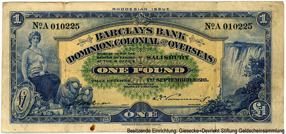 1.1. Emission: Southern Rhodesia. Barclays Bank (Dominion, Colonial and Overseas). Salisbury Branch.