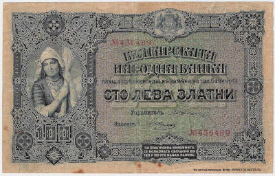 333333-Bulgarian Narodna Bank Banknote 100 leva zlato 1917 .-44444