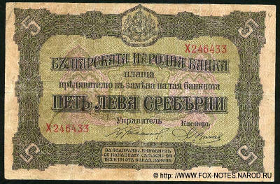 333333-Bulgarian Narodna Bank Banknote 5 lev silver 1917 .-44444