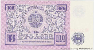 333333-Bulgarian Narodna Bank Banknote 100 lev 1989 .-44444