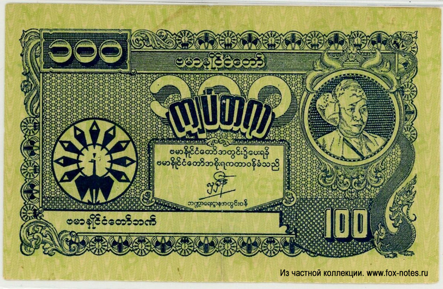State of Burma issues. Burma State Bank. Japanese occupation. Issue 1945.
