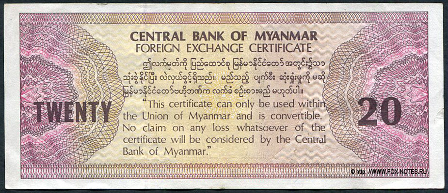 1.1. Issue: Myanmar Union. Issues of the United Bank of Burma (Central Bank of Myanmar). 1993 issue of currency certificates, in US dollars.