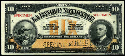 333333-La Banque Nationale 10 Dollars 1922 SPECIMEN-444444