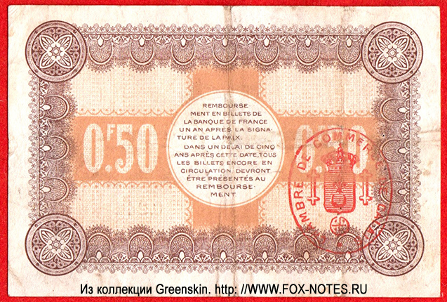Notes: 1.1. Signatures of officials on the banknote : not known. 1.2. Manufacturer of banknotes (printing house): Imprimerie Arnaud, Lyon-Paris. * * * 2.1. No, it isn't. * * * 3.1. Author (s) of sign design: not known.