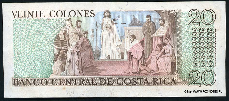 Batch S. V/s BCCR 20. ST - EL PRESIDENTE DE LA JUNTA DIRECTIVA, EL GERENTE DEL BANCO. Date on top. Protective band.. 13.11.1972-26.4.1977.