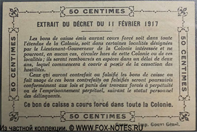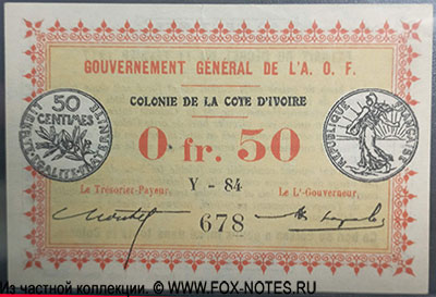 333333-Gouvernement General de L'Afrique Occidentale Francaise. A.O.F. COLONIE DE LA COTE D'IVOIRE 50 CENTIMES DÉCRET DU 11 FÉVRIER 1917.-444444