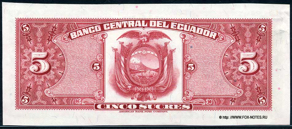 111111 - Paper banknotes of the Republic of Ecuador. Issues of Banco Central del Equador. Ecuador. Issue 1975 Catalogue of Paper Banknotes -222222