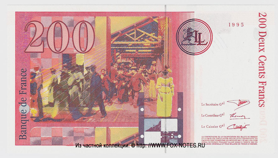 Note: Design 100 francs type 1995 "Gustave Eiffel" was used in the banknote 200 francs type 1995 "Gustave Eiffel" see reference -Banque de France 200 francs type 1995 "Gustave Eiffel" variants