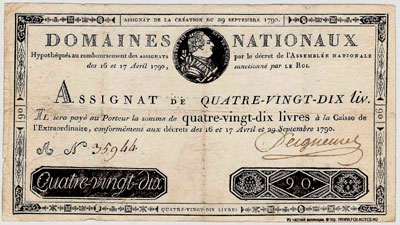333333-Domaines Nationaux - Assignats 90 Livres 1790-444444