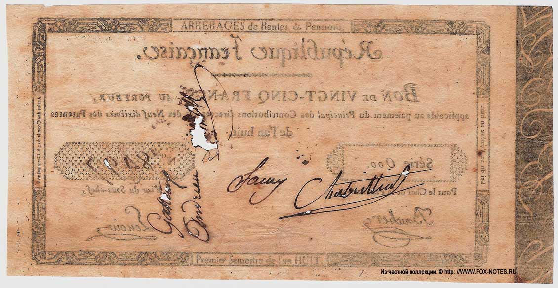 REFERENCE: French Republic. Bon au Porteur issue. Issues 1798-1801. French consulate.