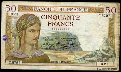 REFERENCE: Banque de France 50 francs type 1933 "Cérès" variants.