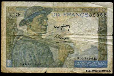 333333-Banque de France 10 Francs_1949 Roussean Gargam-444444