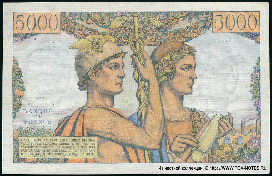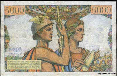 REFERENCE: Banque de France 5000 francs type 1949 "Terre et Mer" options..