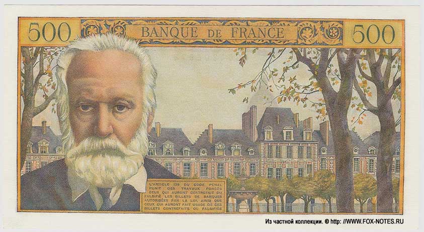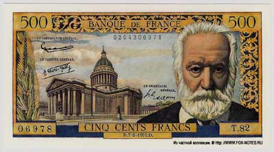 REFERENCE: Banque de France 500 franc type 1953 "Victor Hugo" variants.