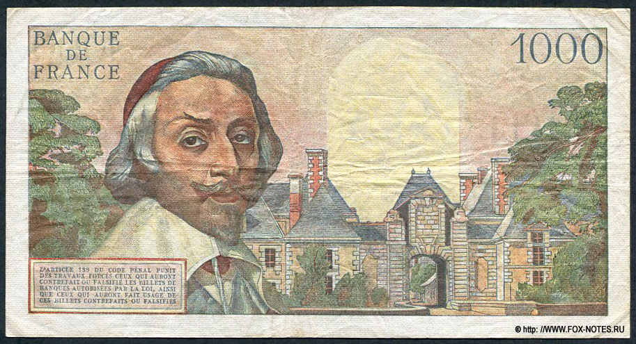 REFERENCE: Banque de France 1000 francs type 1953 "Richelieu" variants.
