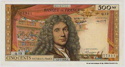 5 new francs type 1959 "Victor Hugo" SPECIMEN 10 new francs type 1959 "Richelieu" 3. Ticket options 10 new francs type 1959 "Richelieu" for dates see - Banque de France 10 new francs type 1959 "Richelieu" variants. 4. Ticket options 50 new francs type 1959 "Henri IV" for dates see link - Banque de France 50 new francs type 1959 "Henri IV" variants. 5. Ticket options 100 new francs type 1959 "Bonaparte" for dates see - Banque de France 100 new francs type 1959 "Bonaparte" options. 6. Ticket options 500 new francs type 1956 "Molière" for dates see link - Banque de France 500 new francs type 1956 "Molière" variants. 7. * 1 Photo of the banknote from the auction of the Auction House Sign.