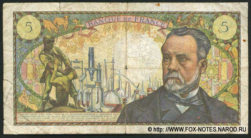 REFERENCE: Banque de France 5 francs type 1966 "Pasteur" variants.
