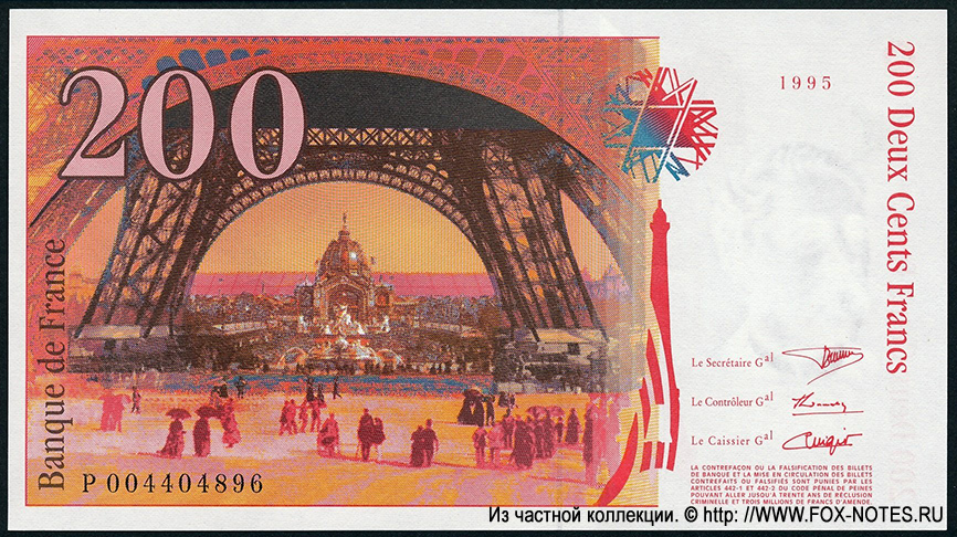 REFERENCE: Banque de France 200 francs type 1995 "Gustave Eiffel" variants.