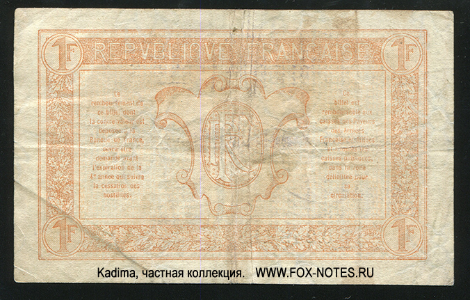 REFERENCE: Issues 1917,1919 for the Military Treasury (Tresorerie aux Armees). World War I. cat. # P cat. # F face value year Description/Notes OBVERSE REVERSE