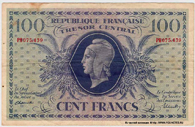333333-République française  Tresor Central 100 Francs 1943-444444