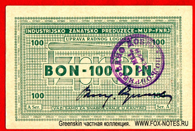 111111 Republics of Yugoslavia. Paper currency catalogue. INDUSTRIJSKO ZANATSKO PREDUZEĆE MUP FNRJ (prisoner booms) -222222